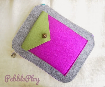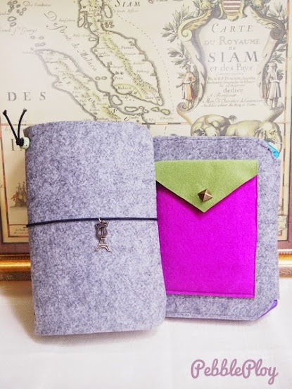 On the left I attach green thin felt and pierce small square hole to store some stuffs likes note card , Tab etc.